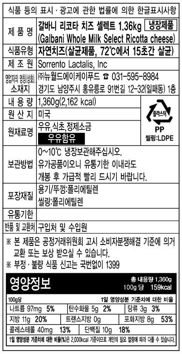 갈바니 리코타치즈 셀렉트 1.36KG