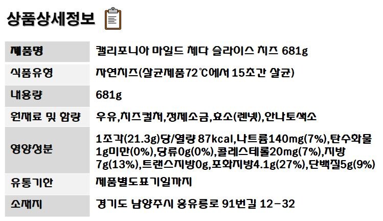 부드러운 체다 치즈로 슬라이스 되어 있어 사용이 간편해 샌드위치, 햄버거, 피자 어디에 사용해도 잘어울립니다.
