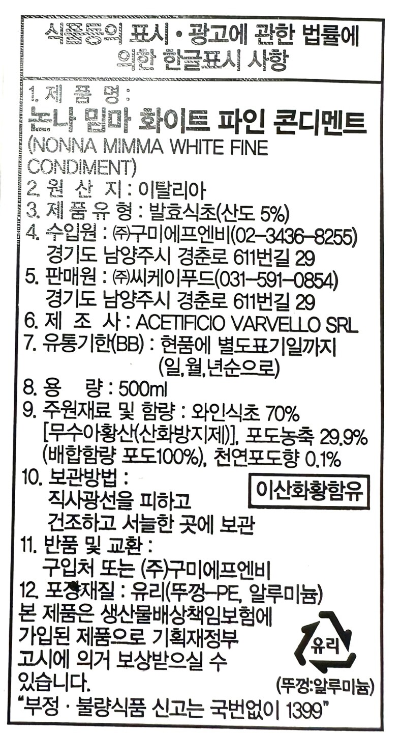 [논나 밈마] 화이트 파인 콘디멘트 500ml