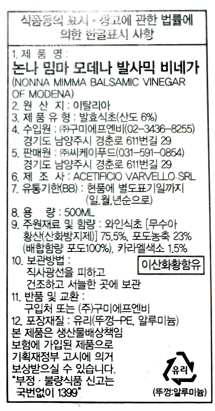 [논나 밈마] 모데나 발사믹 비네거 500ml