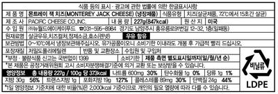 캘리포니아가 원산지인 몬트레이 잭은 섬세하면서 세련된 풍미가 있는 미국 전통 치즈입니다. 숙성기간이 길지 않고 너무 짜지 않아 쉽게 접근 할 수 있는 치즈 종류 중 하나로 각종 치즈요리, 와인안주로 아주 적합한 제품입니다.